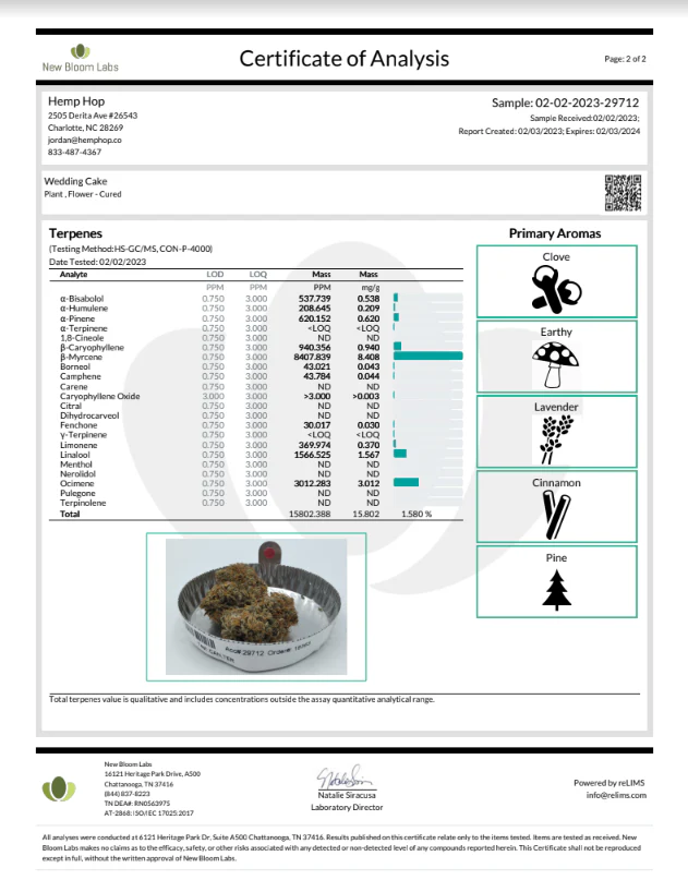 Wedding Cake überzeugt durch kompakte, kristallüberzogene Blüten mit einem intensiven, süßlich-erdigen Aroma.